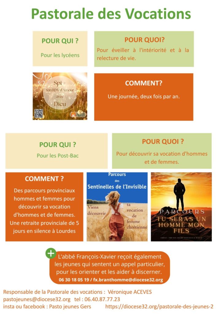 Pour la vie religieuse ou le sacerdoce, deux week-ends provinciaux (WE) sont proposés (voir affiches), ainsi qu’une retraite de discernement à Lourdes du 1er au 5 juillet.